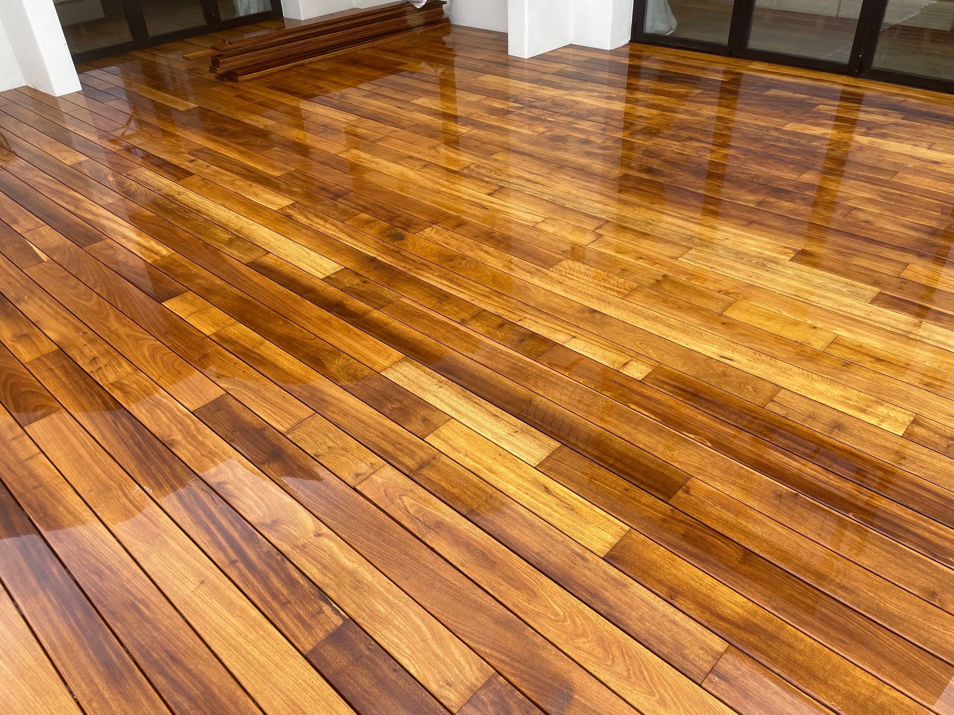 Tarimas flotantes en Wengué, Iroko o ipe.